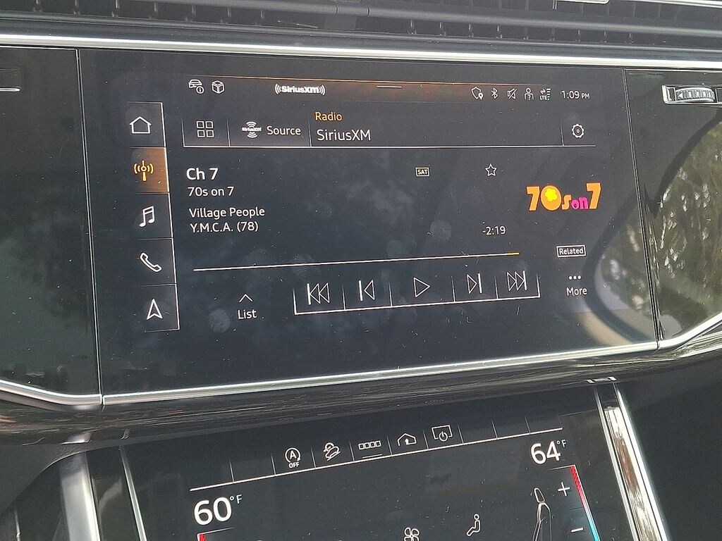 10 Speakers, 3.204 Axle Ratio, 3rd row seats: bench, 4-Wheel Disc Brakes, ABS brakes, Air Conditioning, Alloy wheels, AM/FM radio: SiriusXM w/ 360L, Auto High-beam Headlights, Auto-dimming door mirrors, Auto-dimming Rear-View mirror, Automatic temperature control, Brake assist, Bumpers: body-color, Compass, Delay-off headlights, Driver door bin, Driver vanity mirror, Dual front impact airbags, Dual front side impact airbags, Electronic Stability Control, Emergency communication system: Audi connect CARE, Exterior Parking Camera Rear, Four wheel independent suspension, Front anti-roll bar, Front Bucket Seats, Front Center Armrest, Front dual zone A/C, Front fog lights, Front reading lights, Fully automatic headlights, Garage door transmitter: HomeLink, Genuine wood door panel insert, Heated door mirrors, Heated Front Bucket Seats, Heated front seats, Illuminated entry, Leather Seating Surfaces, Leather Shift Knob, Leather steering wheel, Low tire pressure warning, Memory seat, Navigation system: Audi MMI Navigation plus with Touch Response, Occupant sensing airbag, Outside temperature display, Overhead airbag, Overhead console, Panic alarm, Passenger door bin, Passenger vanity mirror, Power door mirrors, Power driver seat, Power Liftgate, Power moonroof: Panoramic, Power passenger seat, Power steering, Power windows, Radio data system, Radio: Audi Sound System, Rain sensing wipers, Rear air conditioning, Rear anti-roll bar, Rear fog lights, Rear reading lights, Rear seat center armrest, Rear side impact airbag, Rear window defroster, Rear window wiper, Reclining 3rd row seat, Remote keyless entry, Security system, Speed control, Speed-sensing steering, Split folding rear seat, Spoiler, Steering wheel memory, Steering wheel mounted audio controls, Tachometer, Telescoping steering wheel, Tilt steering wheel, Traction control, Trip computer, Turn signal indicator mirrors, Variably intermittent wipers, Wheels: 19" 5-Arm-Star Design.