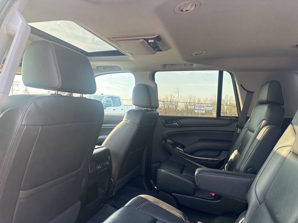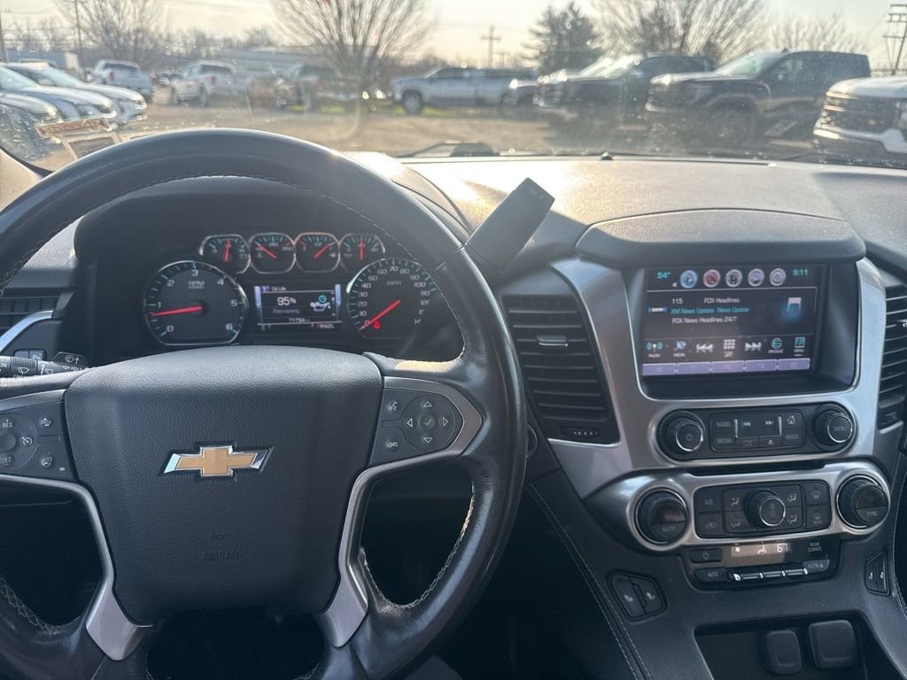 4WD, Black Leather, 18 x 8.5 Aluminum Wheels, 1st & 2nd Row Color-Keyed Carpeted Floor Mats, 2nd Row 60/40 Split-Folding Manual Bench, 2nd Row Pwr Release 60/40 Split Folding Bench Seat, 3.08 Rear Axle Ratio, 3rd Row 60/40 Power Fold Split-Bench, 3rd Row Manual 60/40 Split-Folding Fold Flat Bench, 3rd row seats: split-bench, 4-Wheel Antilock Disc Brakes w/Brake Assist, 4-Wheel Disc Brakes, 5 12-Volt Auxiliary Power Outlets, 9 Speakers, ABS brakes, Adjustable pedals, Air Conditioning, Alloy wheels, AM/FM radio: SiriusXM, Apple CarPlay/Android Auto, Auto High-beam Headlights, Auto-Dimming Inside Rear-View Mirror, Auto-dimming Rear-View mirror, Automatic temperature control, Black Assist Steps, Bluetooth® For Phone, Bose Premium 9-Speaker System, Brake assist, Bumpers: body-color, Cargo Net, CD player, Color-Keyed Carpeting Floor Covering, Compass, Delay-off headlights, Driver door bin, Driver Inboard & Front Passenger Airbags, Driver vanity mirror, Dual front impact airbags, Dual front side impact airbags, Electronic Cruise Control w/Set & Resume Speed, Electronic Stability Control, Emergency communication system: OnStar Guidance, Enhanced Driver Alert Package (Y86), Extended-Range Remote Keyless Entry, Exterior Parking Camera Rear, Floor Console, Fog Lamps, Forward Collision Alert, Front & Rear Park Assist, Front anti-roll bar, Front Bucket Seats, Front Center Armrest, Front Console Organizer w/Storage Bin (LPO), Front dual zone A/C, Front Heated Reclining Bucket Seats, Front Passenger 6-Way Power Seat Adjuster, Front reading lights, Front wheel independent suspension, Fully automatic headlights, Garage door transmitter, Hands Free Power Liftgate, HD Radio, Heated 2nd Row Seats, Heated door mirrors, Heated front seats, Heated Leather Wrapped Steering Wheel, Illuminated entry, IntelliBeam Headlamps, Lane Change Alert w/Side Blind Zone Alert, Lane Keep Assist w/Lane Departure Warning, Leather-Appointed Seat Trim, Leather-Wrapped Steering Wheel, Low Speed Forward Automatic Braking, Low tire pressure warning, Luxury Package, Memory seat, Memory Settings, Occupant sensing airbag, OnStar Basic Plan For 5 Years, Outside temperature display, Overhead airbag, Overhead console, Panic alarm, Passenger door bin, Passenger vanity mirror, Passive Entry System, Pedal memory, Polished Exhaust Tip, Power door mirrors, Power driver seat, Power Liftgate, Power passenger seat, Power Release 2nd Row Bucket Seats, Power steering, Power Sunroof, Power Tilt & Telescopic Steering Column w/Memory, Power windows, Power-Adjustable Accelerator & Brake Pedals, Power-Folding Heated Outside Mirrors, Preferred Equipment Group 1LT, Premium audio system: Chevrolet MyLink, Premium Smooth Ride Suspension Package, Push Button Keyless Start, Radio: Chevrolet MyLink AM/FM Stereo, Radio: Chevrolet MyLink w/Nav/AM/FM Stereo, Rain sensing wipers, Rear air conditioning, Rear anti-roll bar, Rear Cross-Traffic Alert, Rear Park Assist w/Audible Warning, Rear reading lights, Rear Seat Blu-Ray/DVD Entertainment System, Rear seat center armrest, Rear window defroster, Rear window wiper, Remote keyless entry, Remote Vehicle Start, Roof rack: rails only, Roof-Mounted Luggage Rack Side Rails, Security system, Single-Slot CD/MP3 Player, SiriusXM NavTraffic, SiriusXM Satellite Radio, Speed control, Speed-sensing steering, Split folding rear seat, Spoiler, Steering wheel mounted audio controls, Sun, Entertainment & Destinations Package, Tachometer, Telescoping steering wheel, Tilt steering wheel, Traction control, Trip computer, Universal Home Remote, Variably intermittent wipers, Voltmeter, Wheels: 22 x 9 6-Spk Chrome Multi-Feature Design, 4WD, Black Leather.