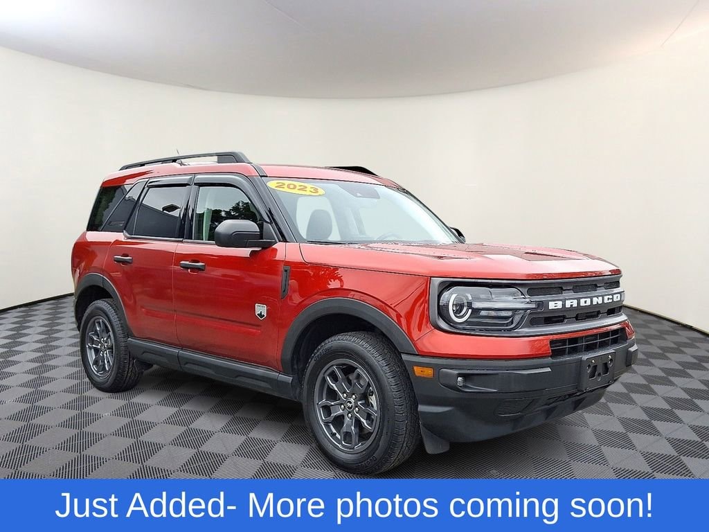 2023 Ford Bronco Sport Big Bend Hot Pepper Red Tinted Clearcoat 4WD 8-Speed Automatic 1.5L EcoBoost 3.80 Axle Ratio, 4-Wheel Disc Brakes, 6 Speakers, ABS brakes, Air Conditioning, Alloy wheels, AM/FM radio: SiriusXM, AM/FM Stereo, Auto High-beam Headlights, Automatic temperature control, Brake assist, Class II Trailer Tow Package w/Trailer Sway Control, Compass, Convenience Package, Delay-off headlights, Driver door bin, Driver vanity mirror, Dual front impact airbags, Dual front side impact airbags, Electronic Stability Control, Emergency communication system: SYNC 3 911 Assist, Equipment Group 200A, Four wheel independent suspension, Front anti-roll bar, Front Bucket Seats, Front Center Armrest, Front Driver Passenger Seatback Zipper Pockets, Front License Plate Bracket, Front reading lights, Fully automatic headlights, Heated door mirrors, Heated Front Bucket Seats, Illuminated entry, Intelligent Access (Lock/Unlock), Knee airbag, Leather-Wrapped Steering Wheel, LED Fog Lamps, Low tire pressure warning, Occupant sensing airbag, Outside temperature display, Overhead airbag, Overhead console, Panic alarm, Passenger door bin, Passenger vanity mirror, Power door mirrors, Power steering, Power windows, Radio data system, Rear anti-roll bar, Rear Parking Sensors, Rear reading lights, Rear seat center armrest, Rear window defroster, Rear window wiper, Remote keyless entry, Security system, SiriusXM, Speed control, Speed-sensing steering, Speed-Sensitive Wipers, Split folding rear seat, Steering wheel mounted audio controls, SYNC 3 Communications Entertainment System, SYNC 3/Apple CarPlay/Android Auto, Tachometer, Telescoping steering wheel, Tilt steering wheel, Traction control, Trip computer, Unique Cloth Front Bucket Seats, Universal Garage Door Opener (UGDO), Variably intermittent wipers, Wheels: 17' Carbonized Gray-Painted Aluminum, Wireless Charging Pad.