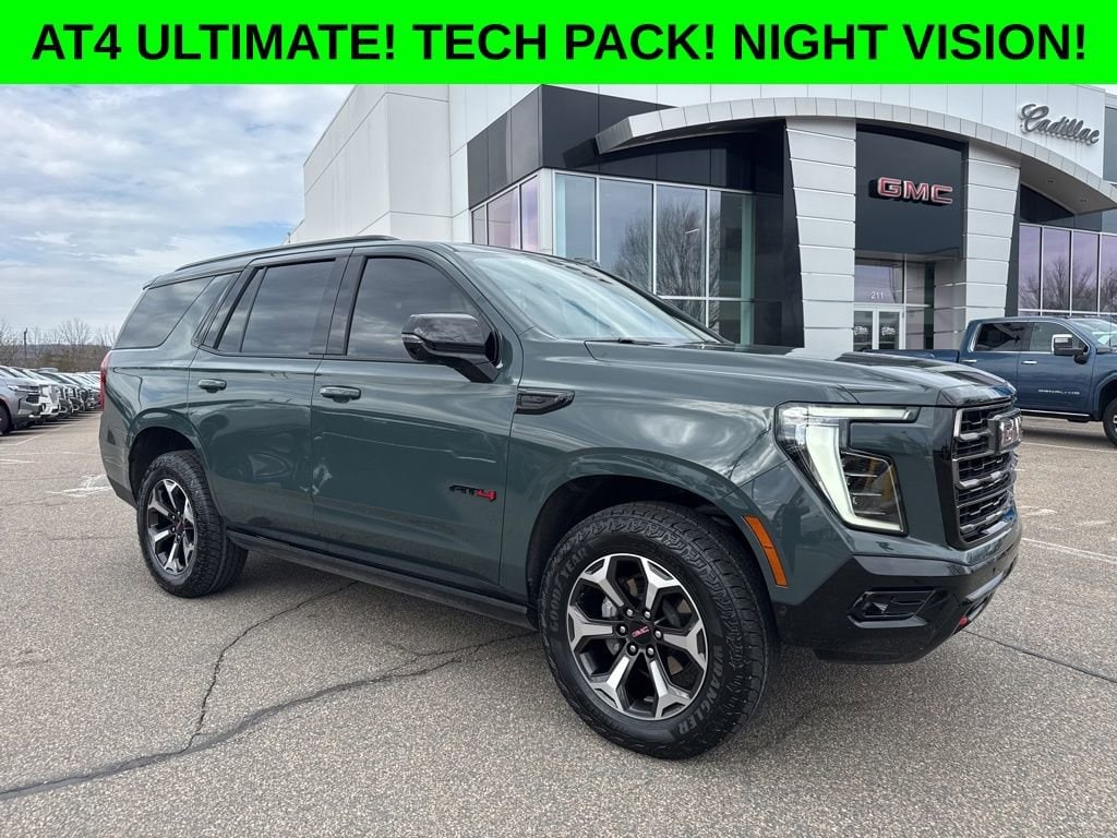 2026 GMC Yukon AT4 Ultimate Midnight Pine 4WD 10-Speed Automatic with Overdrive EcoTec3 6.2L V84WD, 15 Diagonal Multi-Color Head-Up Display, 18 Speakers, 1st and 2nd Rows All-Weather Floor Liners, 3 Years OnStar One, 3.23 Rear Axle Ratio, 3rd Row All-Weather Floor Liners, 3rd row seats: split-bench, 4-Spoke Leather-Wrapped Steering Wheel, 4-Way Power Driver Lumbar Seat Adjuster, 4-Way Power Front Passenger Lumbar Seat Adjuster, 4-Wheel Disc Brakes, 8 Diagonal Rear Touchscreen Climate Control, ABS brakes, Adaptive suspension, Advanced Security Package, Advanced Technology Package, Air Conditioning, Air Ride Adaptive Suspension, All-Weather Cargo Mat, Alloy wheels, AM/FM radio: SiriusXM with 360L, Apple CarPlay/Android Auto, Audio memory, Auto High-beam Headlights, Auto-dimming door mirrors, Auto-dimming Rear-View mirror, Auto-leveling suspension, Automatic temperature control, AutoSense Hands-Free Power Liftgate, Black Roof-Mounted Luggage Rack Side Rails, Blind Zone Steering Assist with Trailering, Body-Color Door Handles, Bose 18-Speaker Surround with Centerpoint, Brake assist, Bright Front and Rear Door Sill Plates, Bumpers: body-color, Compass, Delay-off headlights, Driver 2-Way Power Upper Shoulder, Driver Attention Assist, Driver door bin, Driver Power Massage Seat, Driver vanity mirror, Dual Exhaust System, Dual front impact airbags, Dual front side impact airbags, Dual-Pane Panoramic Power Sunroof, Electronic Limited Slip Differential (ELSD), Electronic Stability Control, Emergency communication system: OnStar and GMC connected services capable, Enhanced Trailering Technology Package, Exterior Parking Camera Rear, Extra Capacity Cooling System, Floor Liner Package, Four wheel independent suspension, Front anti-roll bar, Front Bucket Seats, Front Center Armrest, Front dual zone A/C, Front fog lights, Front High-Approach Angle Fascia, Front Passenger 2-Way Power Upper Shoulder, Front Passenger Power Massage Seat, Front reading lights, Full Grain Leather Seats, Fully automatic headlights, Garage door transmitter, Glass Breakage Sensor, Headphones, Heads-Up Display, Heated door mirrors, Heated Driver and Front Passenger Seats, Heated front seats, Heated rear seats, Heated steering wheel, Heavy-Duty Air Filter, Hill Descent Control, Hitch View, Illuminated entry, Inside Rearview Auo-Dimming Rear Camera Mirror, Integrated Trailer Brake Controller, Leather steering wheel, Low tire pressure warning, Magnetic Ride Control Suspension, Max Trailering Package, Memory seat, Navigation system: GMC Connected Navigation, Night Vision, Occupant sensing airbag, Outside temperature display, Overhead airbag, Overhead console, Panic alarm, Passenger door bin, Passenger vanity mirror, Perforated Heated and Ventilated Driver and Front Passenger Seats, Power door mirrors, Power driver seat, Power Liftgate, Power moonroof, Power passenger seat, Power Release 2nd Row Bucket Seats, Power steering, Power Tilt and Telescopic Steering Column, Power windows, Power-Retractable Assist Steps, Preferred Equipment Group 4SG, Premium Capability Package with Active Response 4WD, Radio: 16.8 Diagonal Premium GMC Infotainment System, Rain sensing wipers, Rear air conditioning, Rear anti-roll bar, Rear audio controls, Rear reading lights, Rear Seat Media System, Rear window defroster, Rear window wiper, Red Horizontal-Mounted Recovery Hooks, Remote keyless entry, Security system, SiriusXM with 360L, Smart Trailer Integration Indicator, Speed control, Speed-sensing steering, Split folding rear seat, Spoiler, Sport Pedal Cover Kit, Steering wheel memory, Steering wheel mounted audio controls, Super Cruise, Tachometer, Telescoping steering wheel, Theft-Deterrent Alarm System, Tilt steering wheel, Traction control, Trailer Camera Provisions, Trailering Assist Guidelines, Trip computer, Turn signal indicator mirrors, Variably intermittent wipers, Vehicle Inclination Sensor, Vehicle Interior Movement Sensor, Ventilated front seats, Voltmeter, Wheel Locks