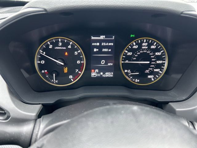 3.70 Axle Ratio, 4-Wheel Disc Brakes, 6 Speakers, ABS brakes, Air Conditioning, All-Weather Floor Liners, Alloy wheels, AM/FM radio: SiriusXM, Anti-whiplash front head restraints, Auto High-beam Headlights, Auto-Dimming Exterior Mirror w/Approach Light, Auto-Dimming Mirror w/Compass & HomeLink, Automatic temperature control, Brake assist, Bumpers: body-color, Crosstrek Mirror Package, Driver door bin, Driver vanity mirror, Dual front impact airbags, Dual front side impact airbags, Electronic Stability Control, Emergency communication system: STARLINK Safety and Security (Subscription Required), Exterior Parking Camera Rear, Four wheel independent suspension, Front anti-roll bar, Front Bucket Seats, Front Center Armrest, Front dual zone A/C, Front fog lights, Front reading lights, Fully automatic headlights, Heated door mirrors, Heated Front Bucket Seats, Heated front seats, Illuminated entry, Knee airbag, Leather Shift Knob, Low tire pressure warning, Occupant sensing airbag, Outside temperature display, Overhead airbag, Overhead console, Panic alarm, Passenger door bin, Passenger vanity mirror, Power door mirrors, Power steering, Power windows, Radio data system, Radio: Subaru STARLINK 11.6" Multimedia Plus Sys, Rear anti-roll bar, Rear Bumper Cover, Rear seat center armrest, Rear Seatback Protector, Rear window defroster, Rear window wiper, Remote keyless entry, Security system, Speed control, Speed-sensing steering, Split folding rear seat, Spoiler, Sport Cloth Upholstery, Standard Model, STARLINK/Apple CarPlay/Android Auto, Steering wheel mounted audio controls, Tachometer, Telescoping steering wheel, Tilt steering wheel, Traction control, Trip computer, Turn signal indicator mirrors, Variably intermittent wipers, Wheels: 18" x 7.0J Dark Gray Aluminum Alloy.